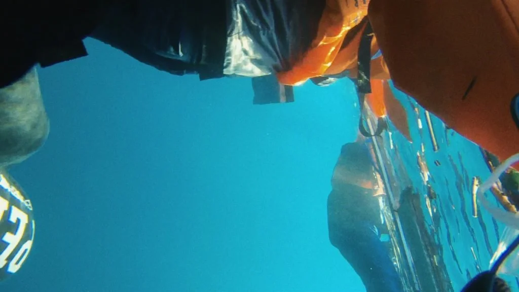 Ni la réalisatrice ni ses compagnons d’infortune n’ont de visage sur les images. Ce ne sont que des corps flottants, en détresse, soumis à l’étendue d’eau salée dans laquelle la caméra est plongée. Elle sort parfois à la surface, d’un geste presque involontaire, capturant des cris et, enfin, un avion. Purple Sea est l’histoire d’une opposition entre la mort, incontrôlable, qui guette, et un esprit qui subsiste dans la panique, l’horreur. La voix d’Amel Alzakout est presque trop calme face à ce qui est montré, comme si elle était déterminée à trouver la mort, comme si elle ne faisait de ses images qu’un dernier témoignage.